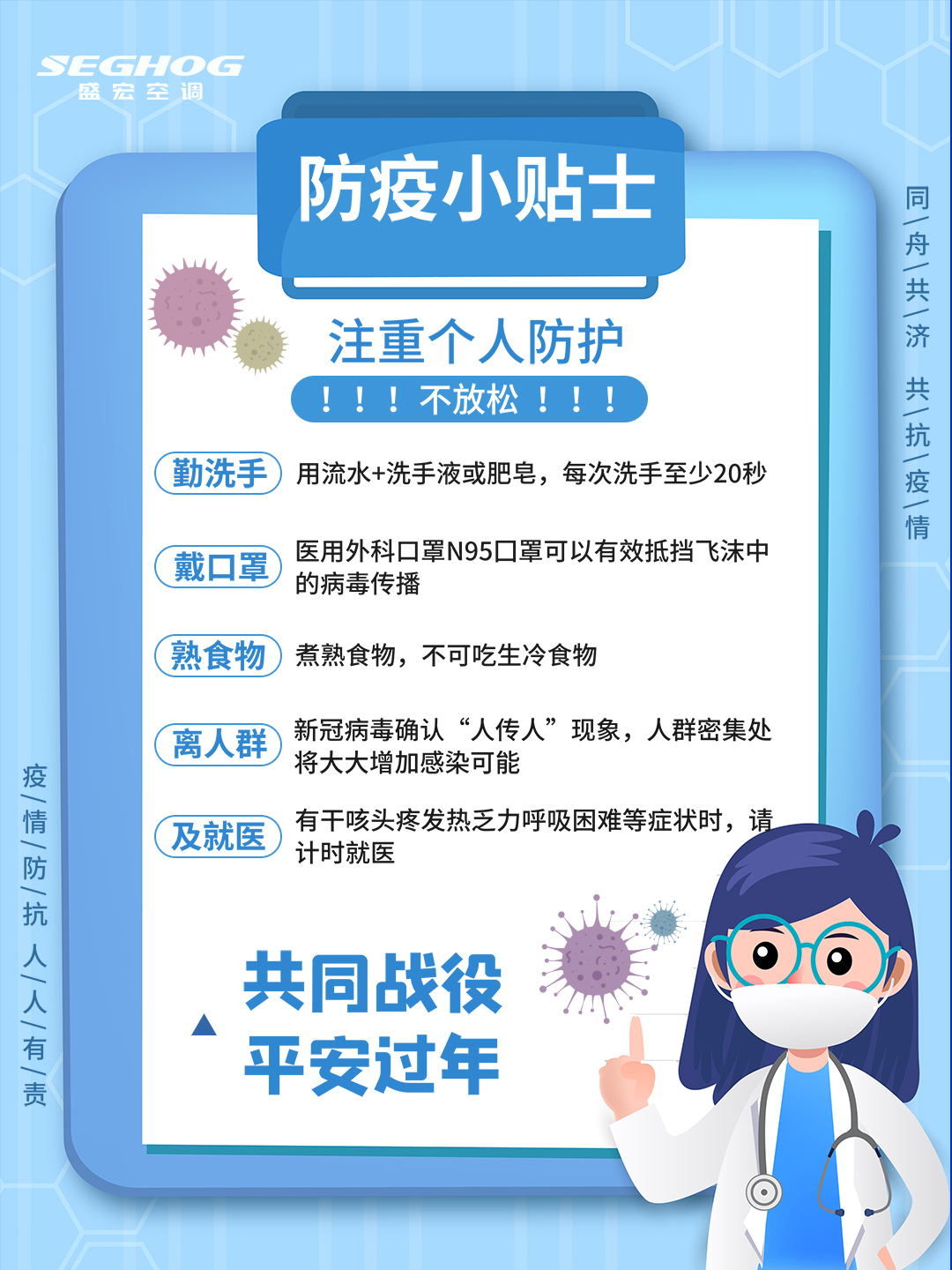 白城市傳染病醫院聯合盛宏中央空調溫馨提醒您,如今,國內生產生活秩序已基本恢復,但當前,疫情仍在全球蔓延,我們仍然絲毫不能放松警惕。